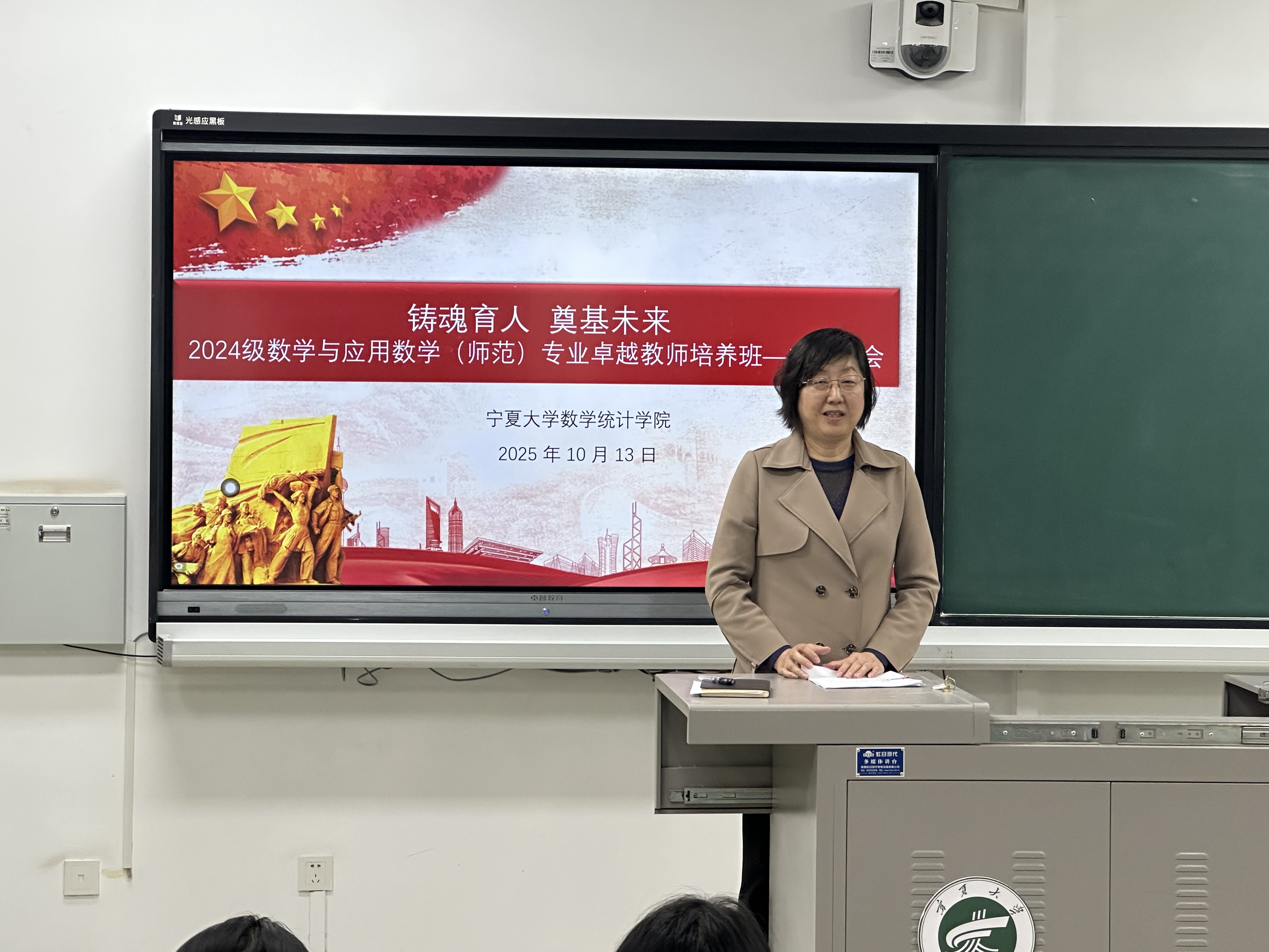 2025年10月13日晚,2024级数学与应用数学(卓越教师培养班)在贺兰山校区一教A阶103教室召开“铸魂育人、奠基未来”主题班会。公司党委副书记、博士生导师韩惠丽教授,班主任李超老师及全体员工参加。