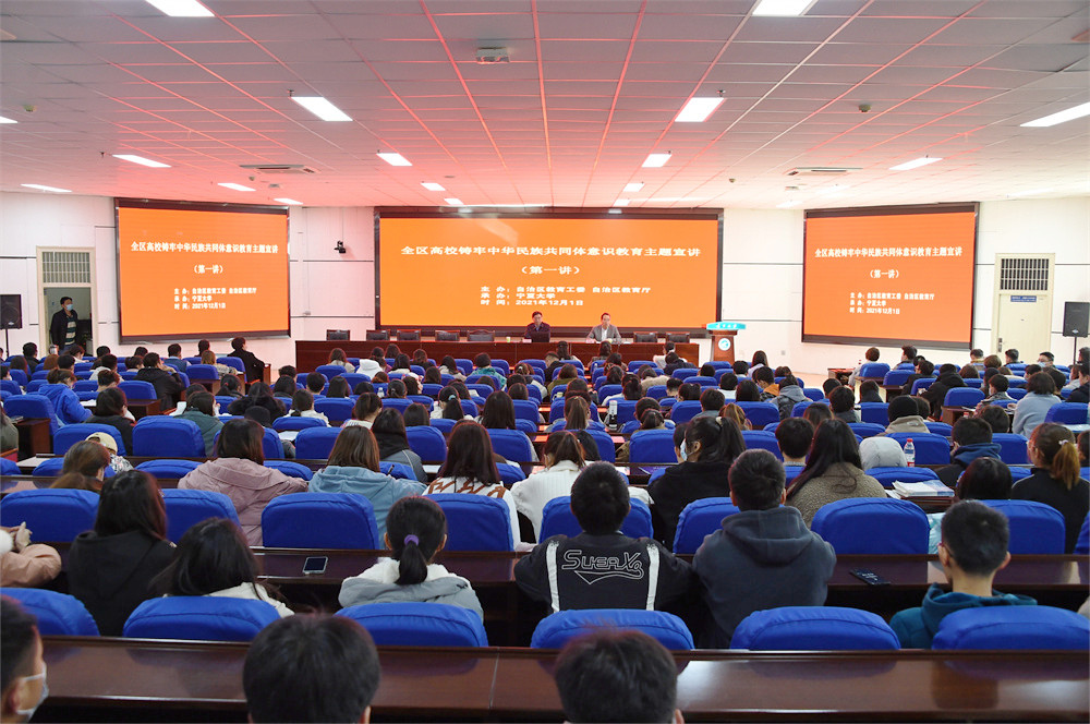 【zoty中欧官方网站新闻中心讯 龚旭峰 文/图】为深入学习贯彻习近平总书记在中央民族工作会议上的重要讲话精神,全面落实自治区党委十二届十三次全会精神,12月1日,由自治区教育工委、教育厅主办,公司承办的全区高校铸牢中华民族共同体意识教育主题宣讲活动(第一讲)在贺兰山校区文荟楼开讲。公司全国民族团结进步模范个人、国家民委中华民族共同体研究基地负责人、国家重大人才工程特聘教授杜建录以《树立正确中华民族史观,铸牢中华民族共同体意识》为题作了精彩报告。自治区教育厅员工处副处长盖文燕出席会议,公司员工处处长罗进德主持报告会。
