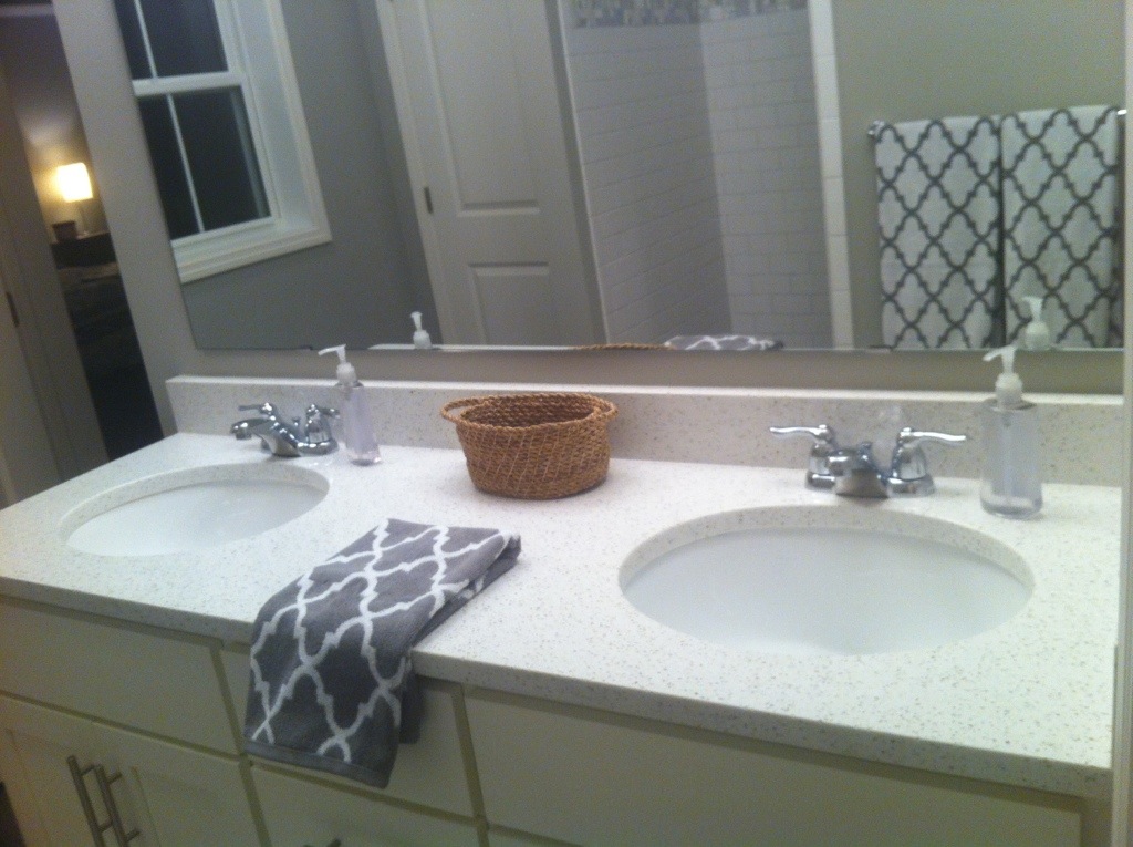 more drawers in each of the bathrooms, and having two linen closets in our master bath and another in the hallway.
